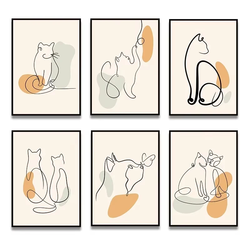 Elevate Your Space with a Minimalist One Line Cat Canvas Print - Perfect for Living Rooms and Bedrooms